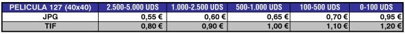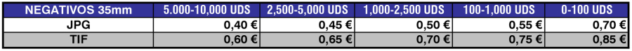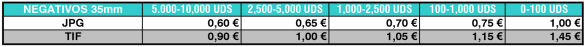 Estas tarifas son tanto para negativos en blanco y negro o color como para positivos sin enmarcar.