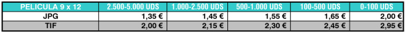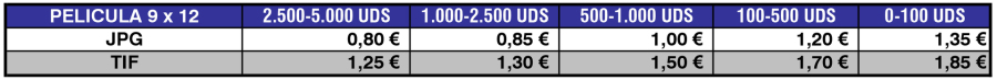 Tarifas de Digitalización de Película de 9x12. Calidad PREMIUM (2.400ppp.)
