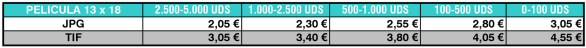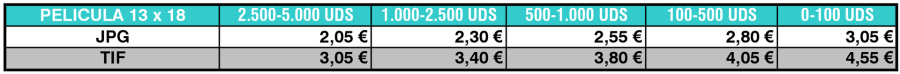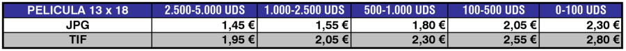 Tarifas de Digitalización de Películas 13x18. Calidad PREMIUM (1.200ppp)