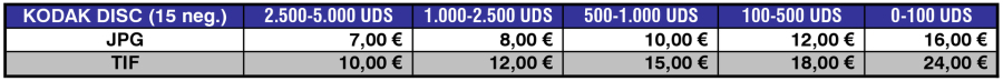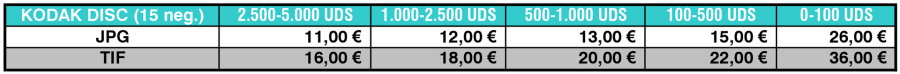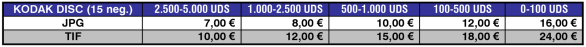 Tarifas de Digitalización de Películas Kodak Disc. (15 Negativos).
