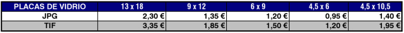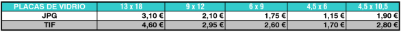 Tarifas de Digitalización de Placas de Vidrio. Negativos y Positivos. Calidad BASICA. (Resolución Variable según Tamaño)