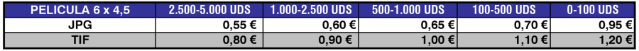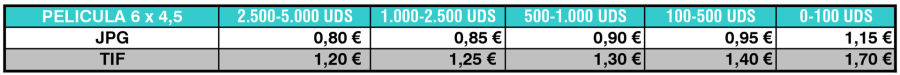 Tarifas de Digitalización de Película 6x4.5. Calidad PREMIUM (3.200ppp.)