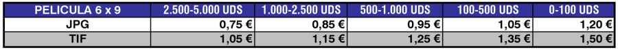 Tarifas de Digitalización de Películas 6x9 (2.400ppp.)