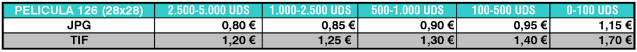 Tarifas de Digitalización de Películas de Formato 126. Calidad PREMIUM (4.800ppp.)