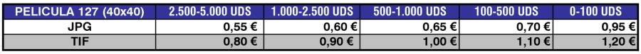 Tarifas de Digitalización de Películas Formato 127. Calidad PREMIUM (4.800ppp.)