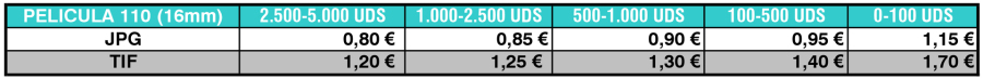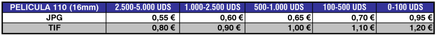 Tarifas de Digitalización de Películas Formato 110. Calidad PREMIUM (9.600ppp.)