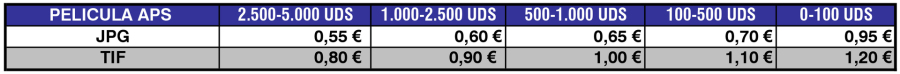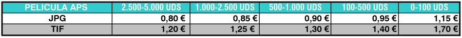 Tarifas de Digitalización de Películas APS. Calidad PREMIUM (4.800ppp.)