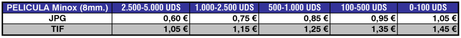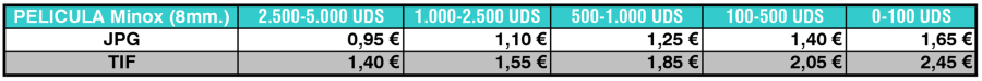 Tarifas de Digitalización de Película Minox. Calidad PREMIUM (12.800ppp.)